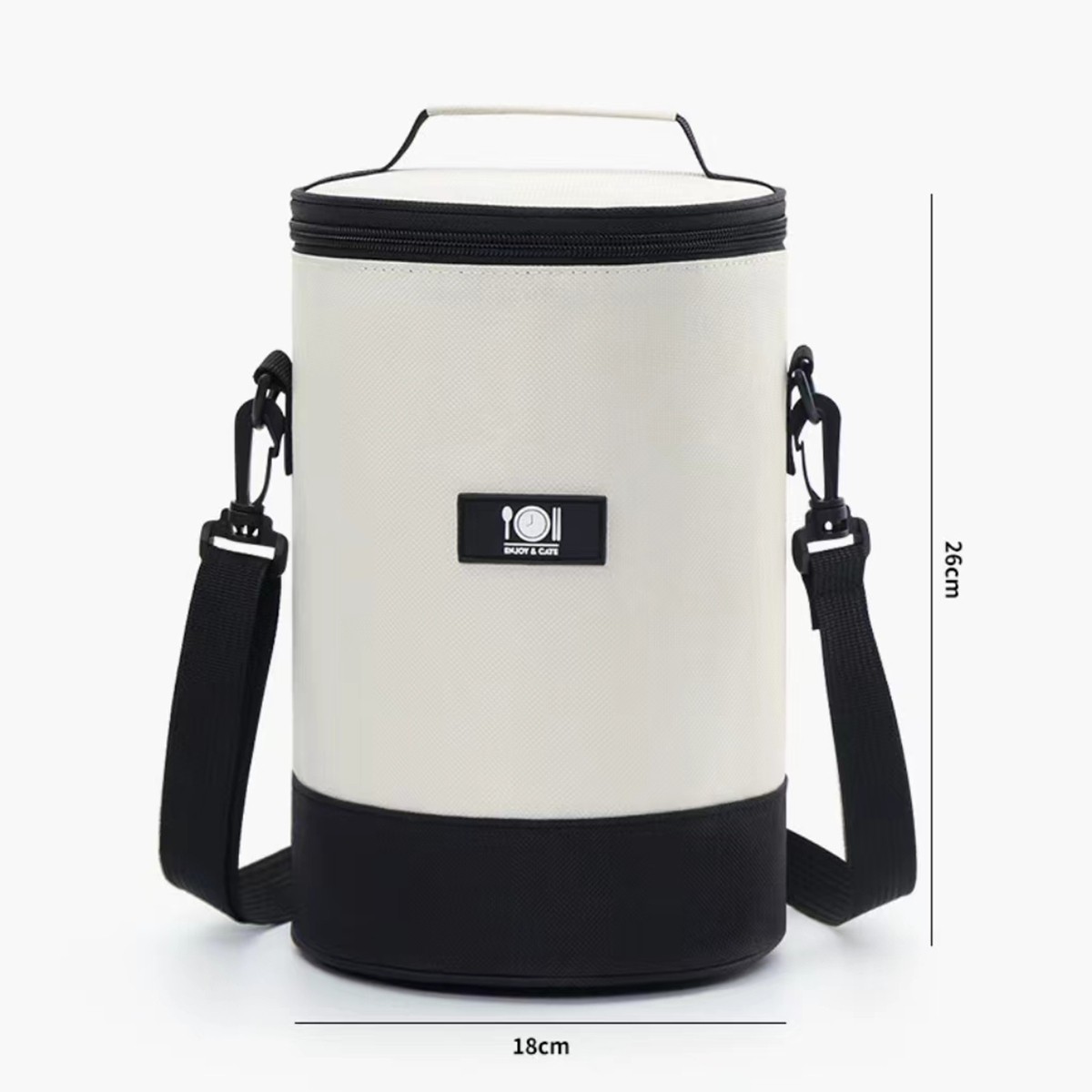 Description:Crafted from durable Oxford fabric, reinforced with aluminum foil insulation and waterproof lining, this tote is designed for carrying lunch boxes, fruits, drinks, and snacks. Featuring a thick-lined cylindrical shape and a smooth zipper closure, it ensures everything stays fresh and secure. The tote is equipped with a comfortable hand strap and removable shoulder straps on both sides, offering versatile carrying options. Perfect for daily commuting, school, or picnics.