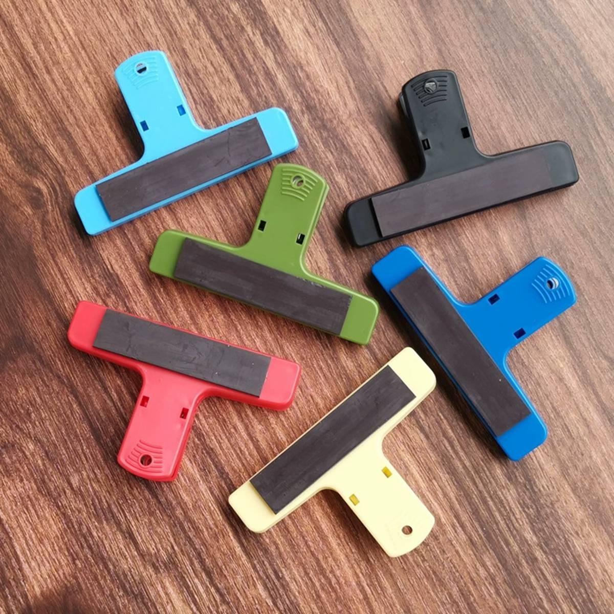 Description:Great size for keeping snack bags freshly sealed or keeping documents grouped. With sturdy gripper teeth and a durable internal metal spring. New Stronger Spring! Optional magnetic backing available.