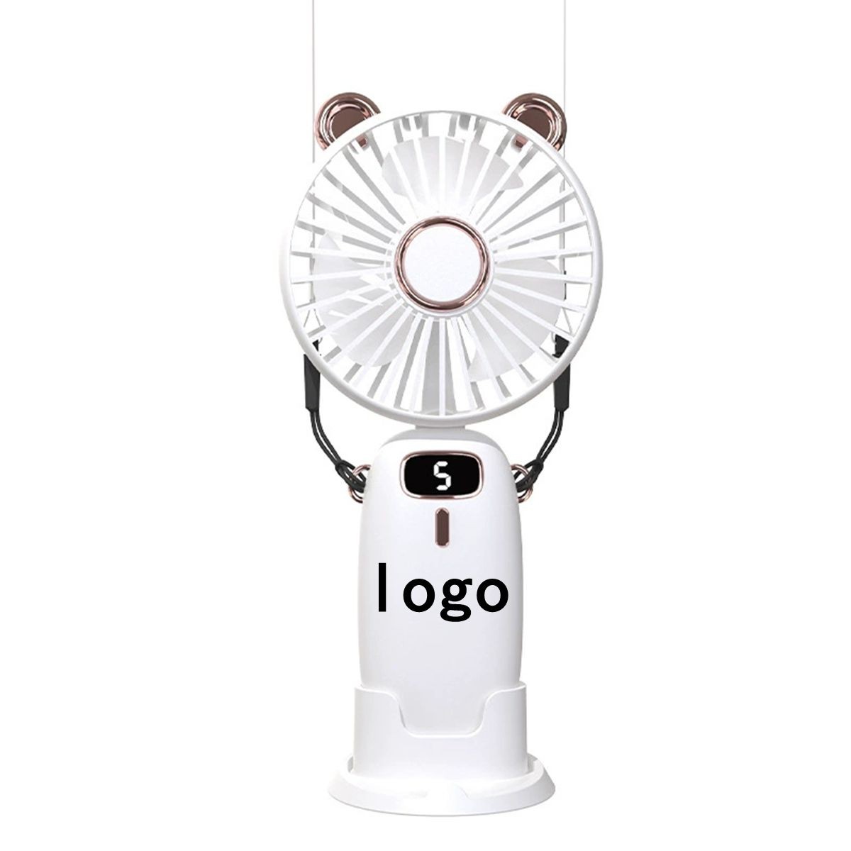 Description:The small fan is made of plastic, supports USB charging, and has long battery life. The five-speed wind force can be adjusted, and it can be held by hand, hung on the neck and on the desktop, bringing you a refreshing summer.