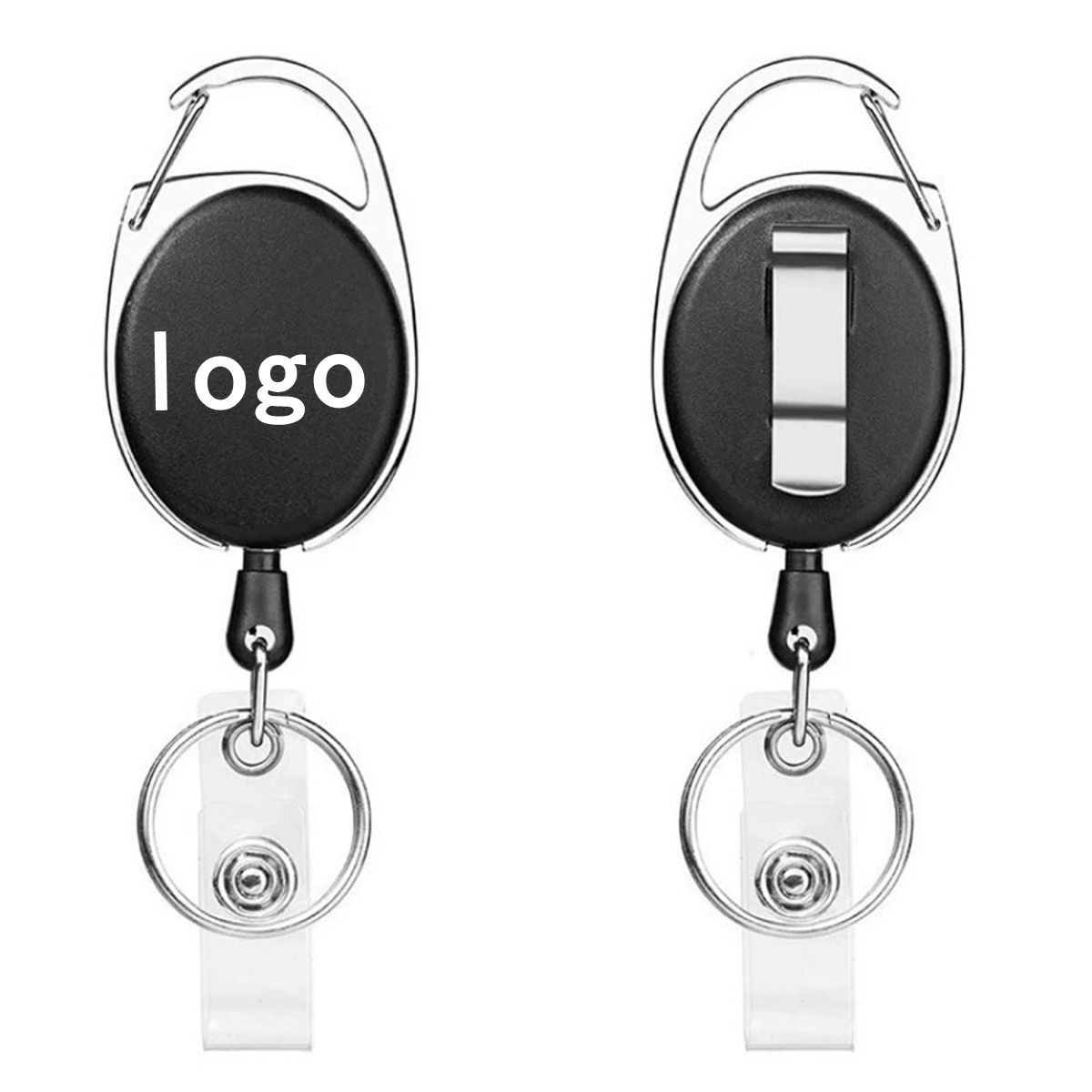 Description:Oval shape retractable badge holder with clip on the back. Great retractable reel for events, trade shows, corporate name tags, badges, and ID cards.