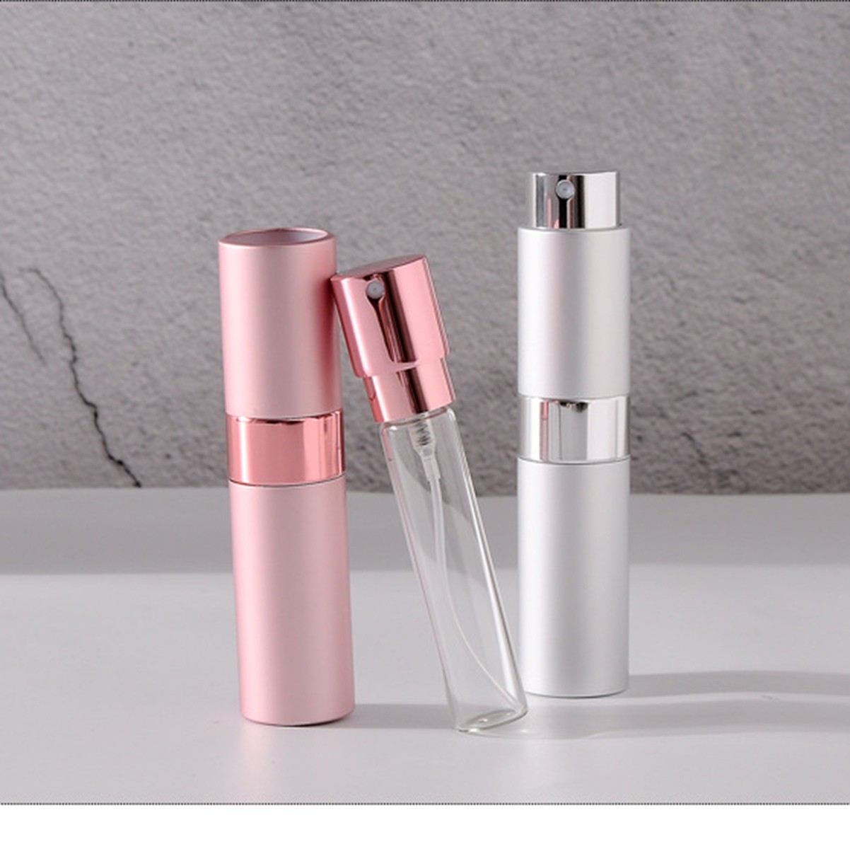 Description:The dispenser is made of a lightweight aluminum shell with a comfortable touch and an attractive appearance. Twist the top and pull the little glass bottle out, use the funnel or dispenser tool to fill your cosmetics into the small bottle. 5ml atomizer spray bottles are used to dispense perfume, and cosmetics when traveling or going out. The sprayer is refillable and portable, with no drips or leaks.