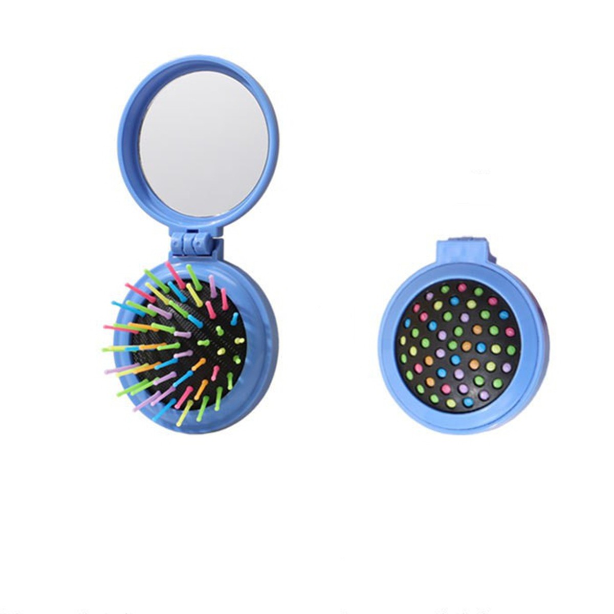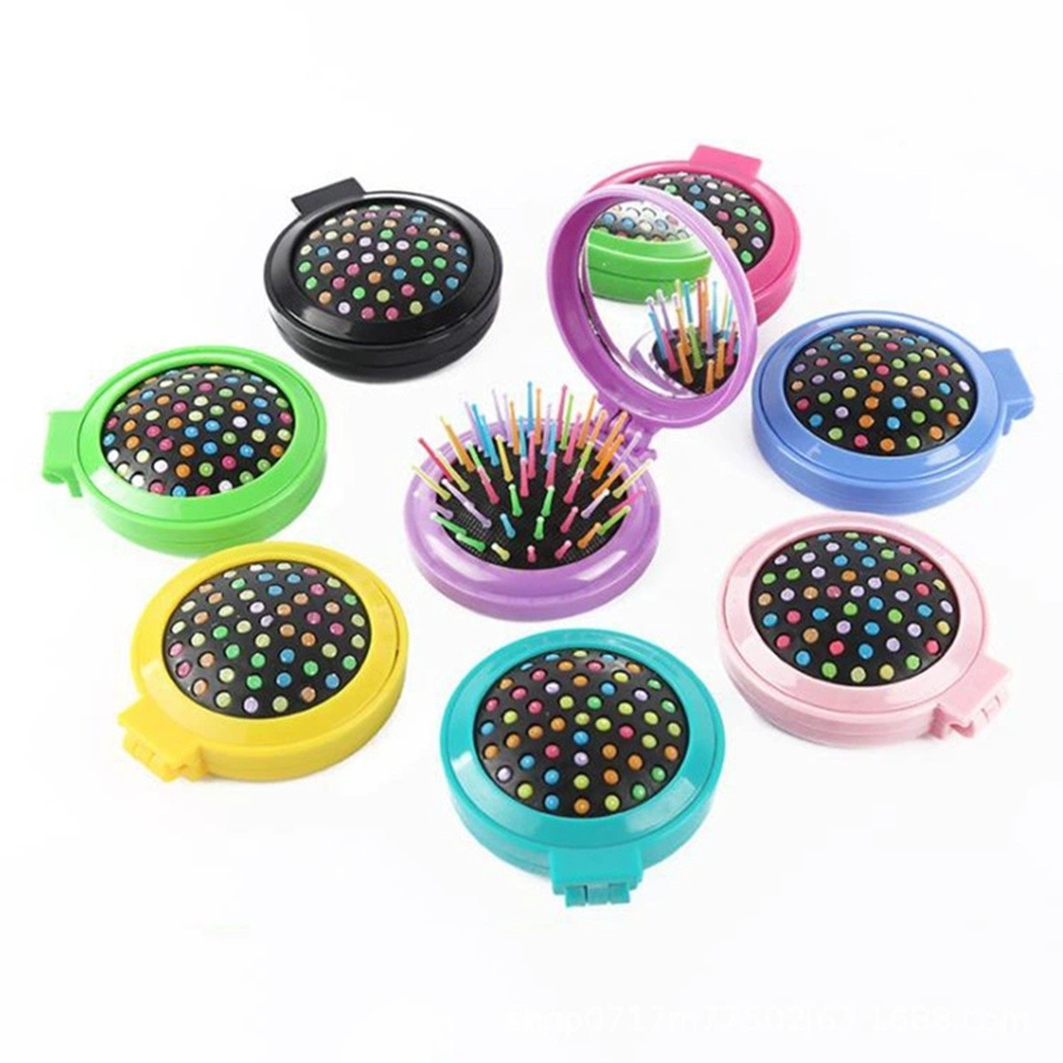 Description: This folding makeup mirror with hairbrush can be taken just about anywhere with your customers displaying your logo. A perfect day-to-day accessory that's easy to use and convenient for travel, opening to reveal a pop-out rainbow brush and a round mirror. This cute item comes in bright and bold eye-catching colors.