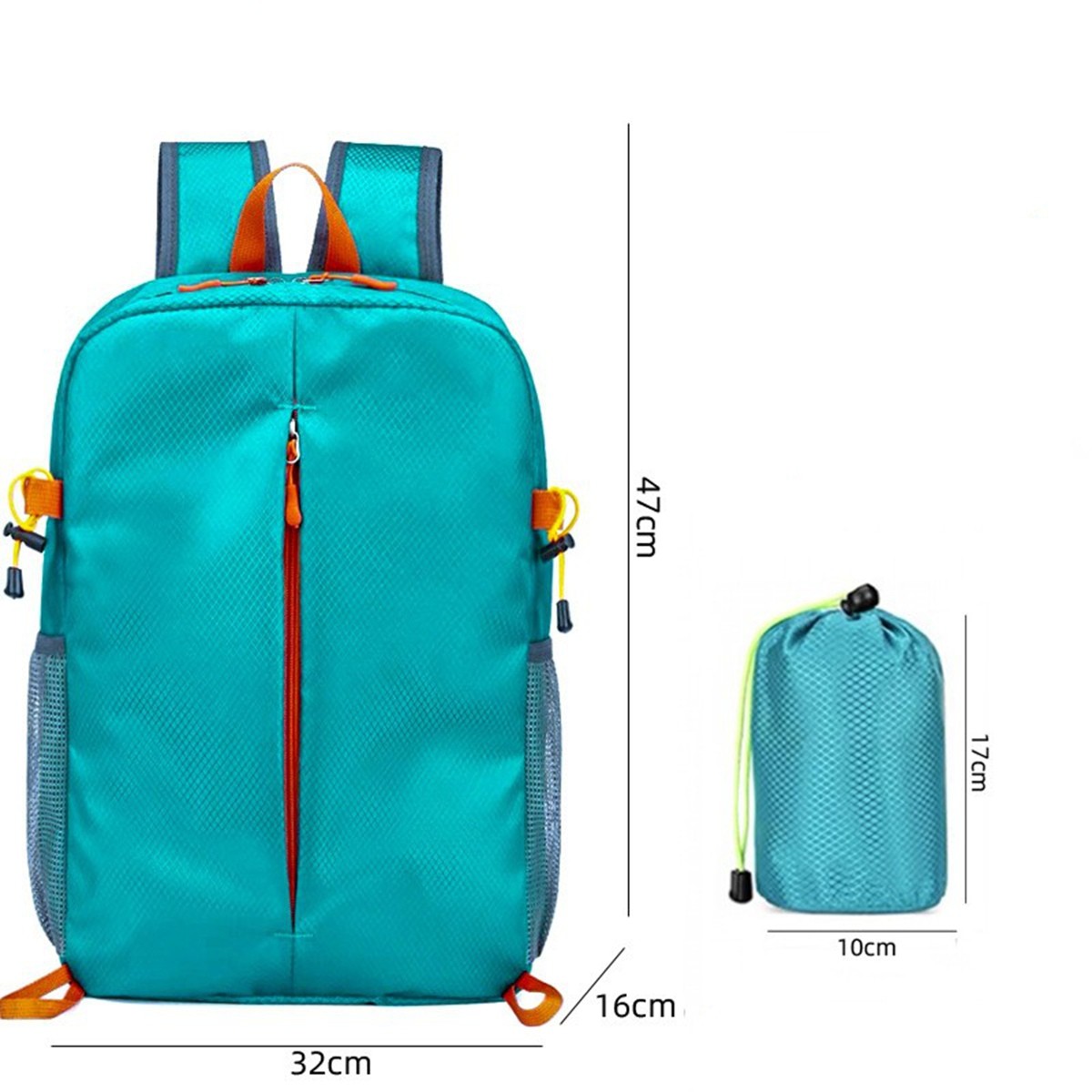 Description: This backpack is made of polyester. Features include two side pouches and external webbing design which could fix the alpenstock.?It can be easily folded down into a compact size of just 3.9 x 3.9 x 5.9 inches. Multiple colors are available. Perfect for day trips, travel, day hikes, school, camping, and shopping.