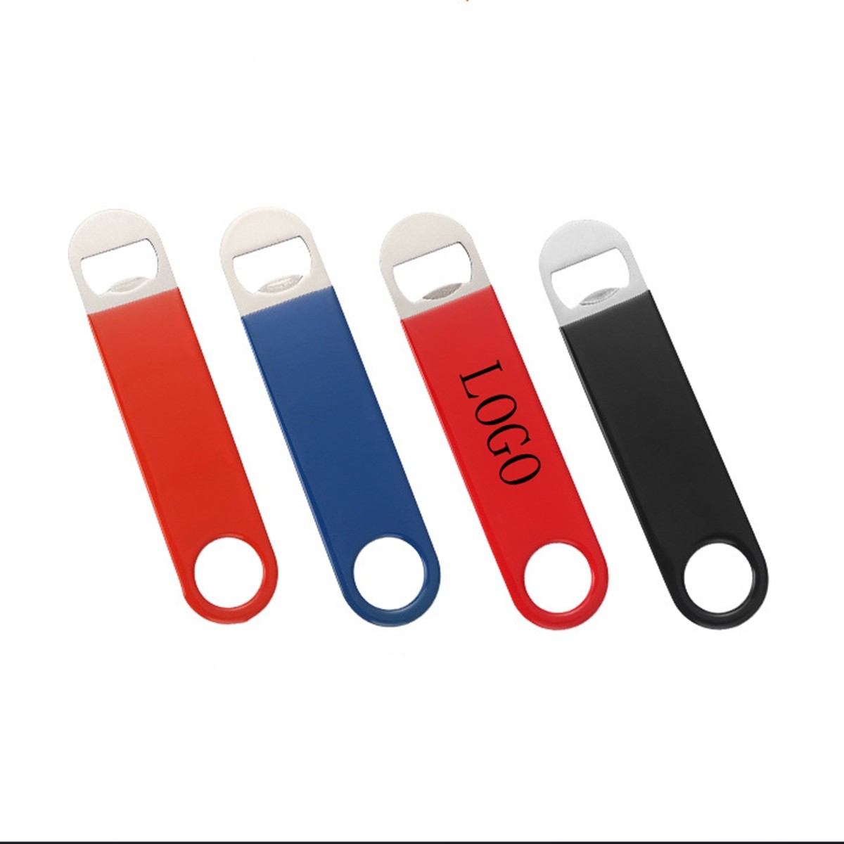 Description:This pub metal paddle bottle opener made of stainless steel with vinyl coating. Easy grip and durable.