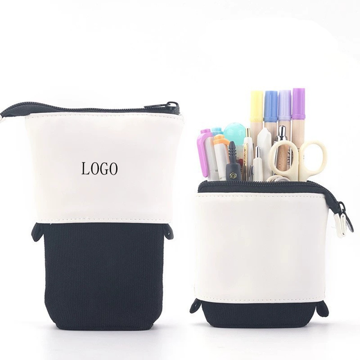 Description: Made of unique PU and heavy duty cotton material,Soft touch,high-end style. Telescopic pencil case design of being a both pencil case and pencil holder. It can stand up on your desk, save space and easy to access. It can store 20 pens,20cm ruler,1 scissors,eraser,etc.Suitable for both office,home and travel use. Internal pocket can storage and classified small item,make you pencil box stay away from mess.