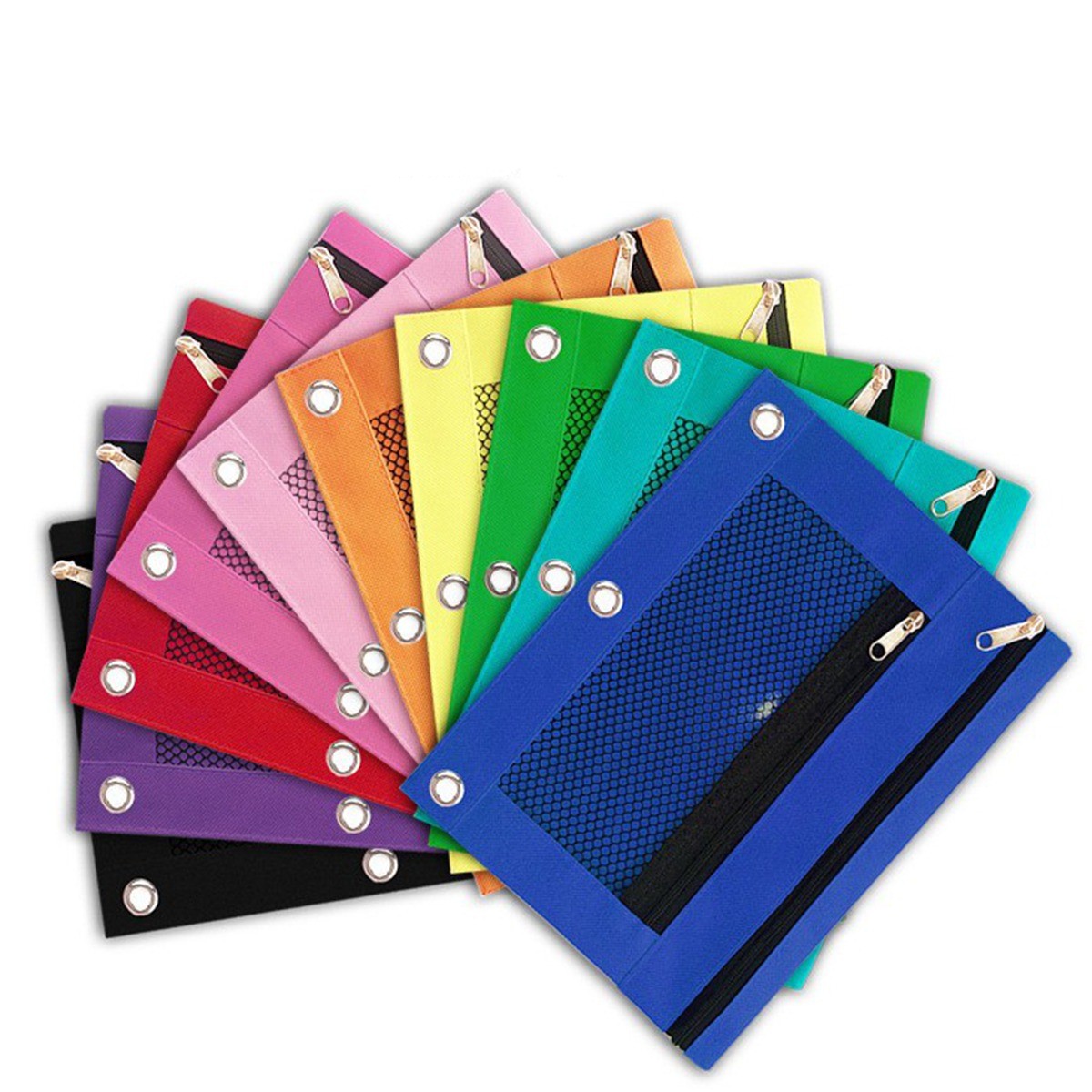 Description: Made of durable coated nylon and thick PVC, strong load-bearing capacity, not easy to tear, poke holes, slightly waterproof, durable. Each bag has two zipper compartments, whether it's a clear zipper pencil pouch or a zipper mesh pencil pouch, you can easily find what you need. Can hold pencils, scissors, erasers, pencil sharpeners, pens, and other stationery supplies, suitable for use as a loose-leaf binder pencil pouch.