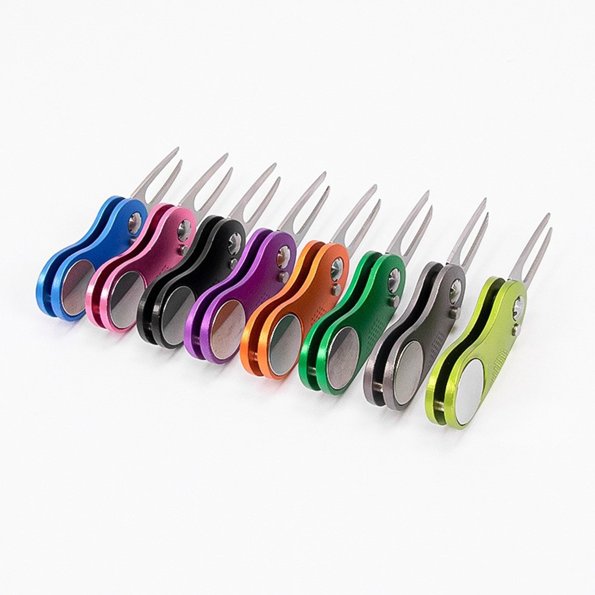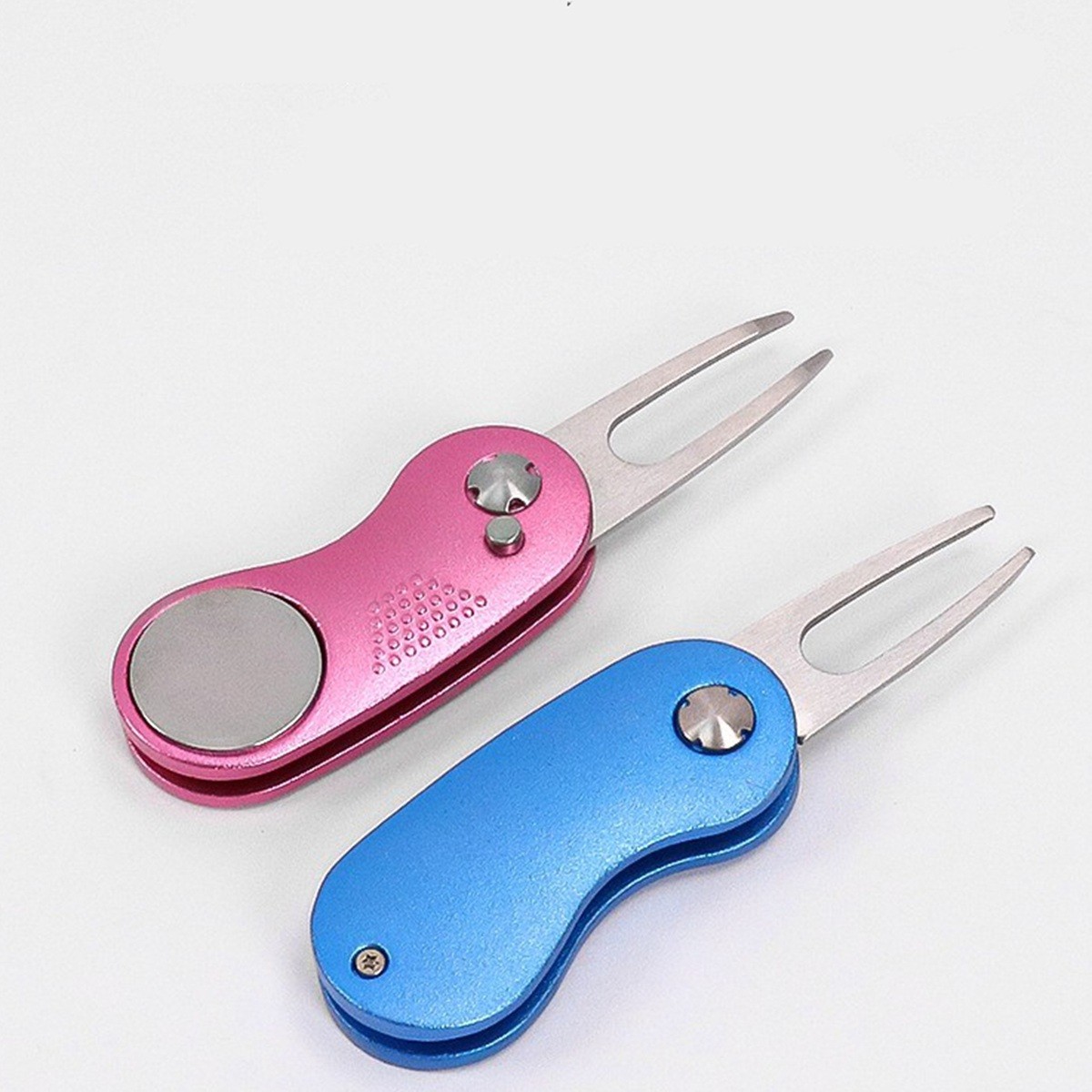 Description: Metallic Foldable Golf Divot Tool,the fork can be folded up with the pop-up button; You can press the spring button to easily open and close the divot repair tool.