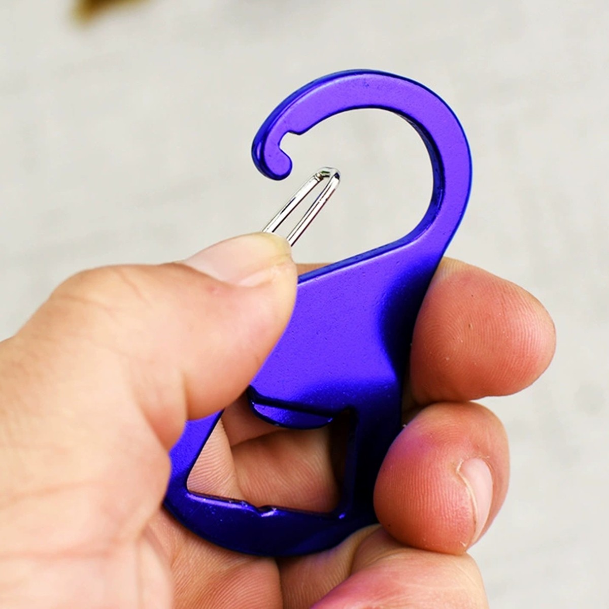 Description:This carabiner opener is made of good quality aluminum alloy, strong and durable. This handy item fits for attaching to key holder, gym bag, backpack, belt loop, bag strap and more.