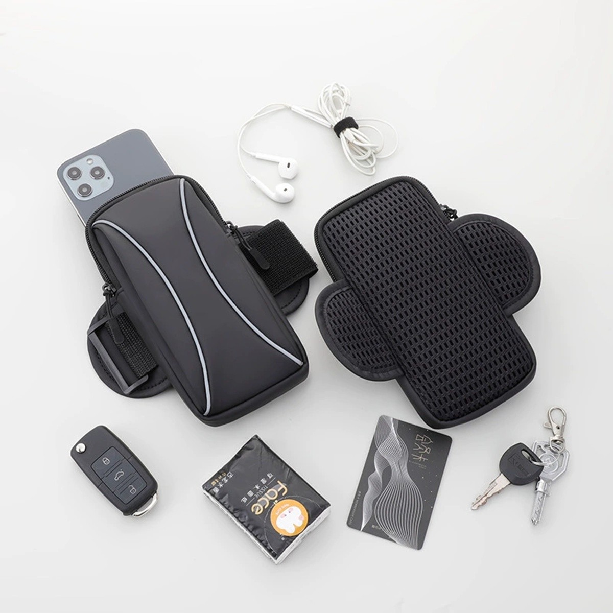 Description: Our sports mobile phone arm bag is a must-have for all fitness enthusiasts, suitable for both men and women. Crafted with ultra-light and waterproof materials, it ensures your phone stays dry and protected during any sweaty workout or outdoor run. Its ergonomic design allows for a snug fit on either the arm or wrist, providing easy access to your device. With multiple compartments, it can also hold keys, cards, and other small essentials.