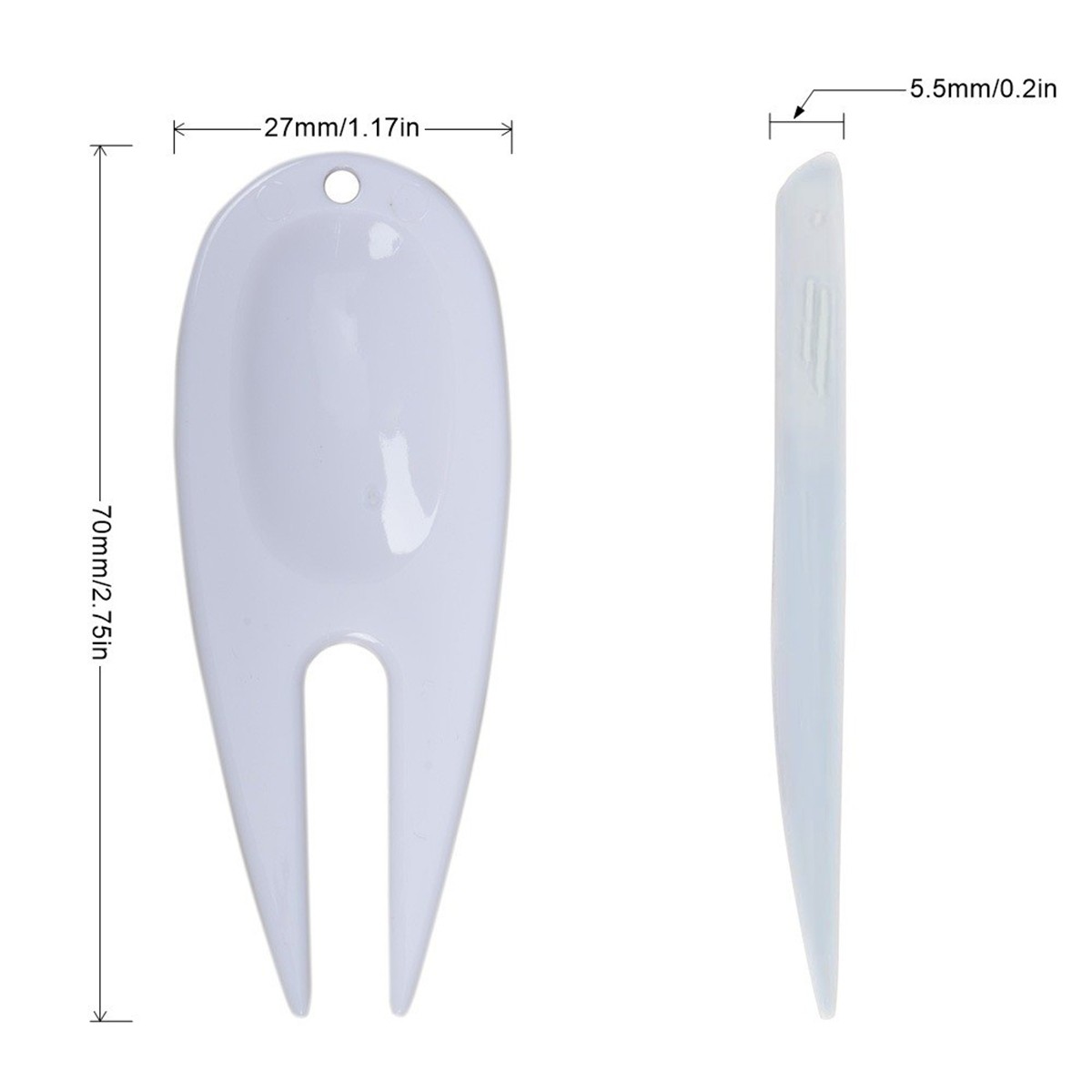 Description: Experience the convenience of our divot tool's lightweight plastic design, making it effortlessly portable in your pocket or golf bag. Take it with you anywhere on the course. Insert the tool's prongs into the divot's sides, delicately lifting the turf's edges. Then, gently push the raised turf back into place with the divot tool, ensuring a thorough repair of the divot.