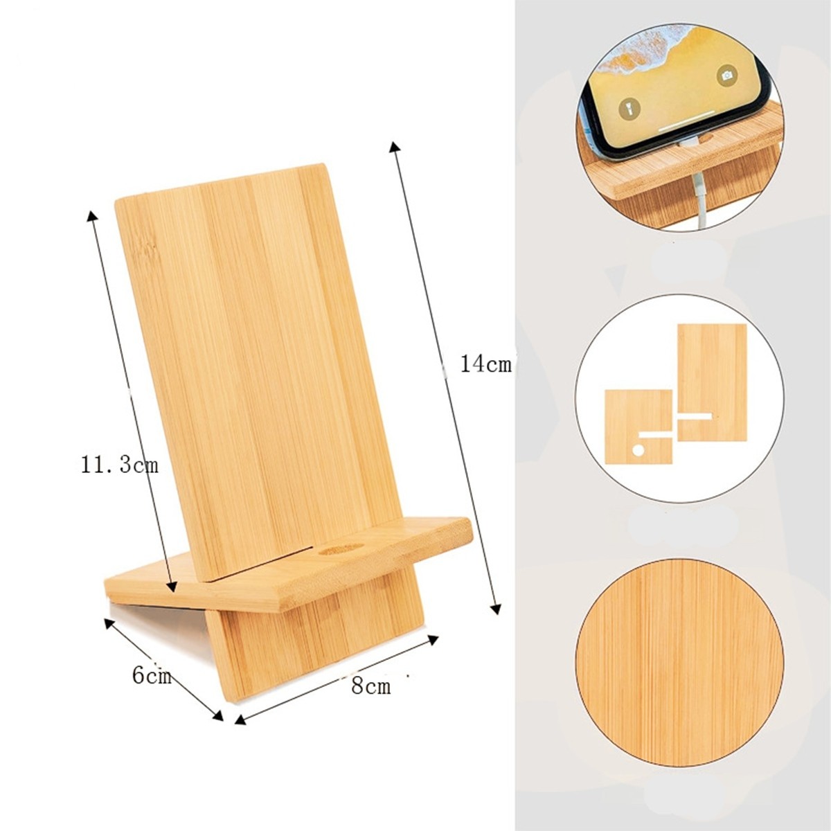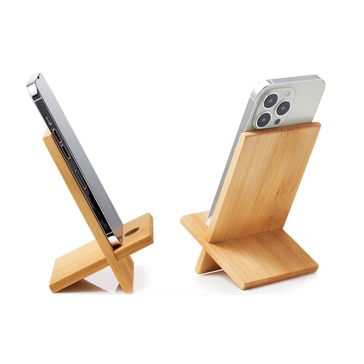 Description: Our Premium Bamboo Phone Stand meticulously carved from sustainable bamboo, this stand features precise dimensions of 5.51"x3.15" to support your phone at the ideal viewing angle. The smoothly polished surface ensures your device rests without risk of scratches, while the smart cable management slots maintain an organized desk space. Its collapsible structure makes it a breeze to store or take on the go, enhancing its utility. Add a touch of sophistication to your workspace.