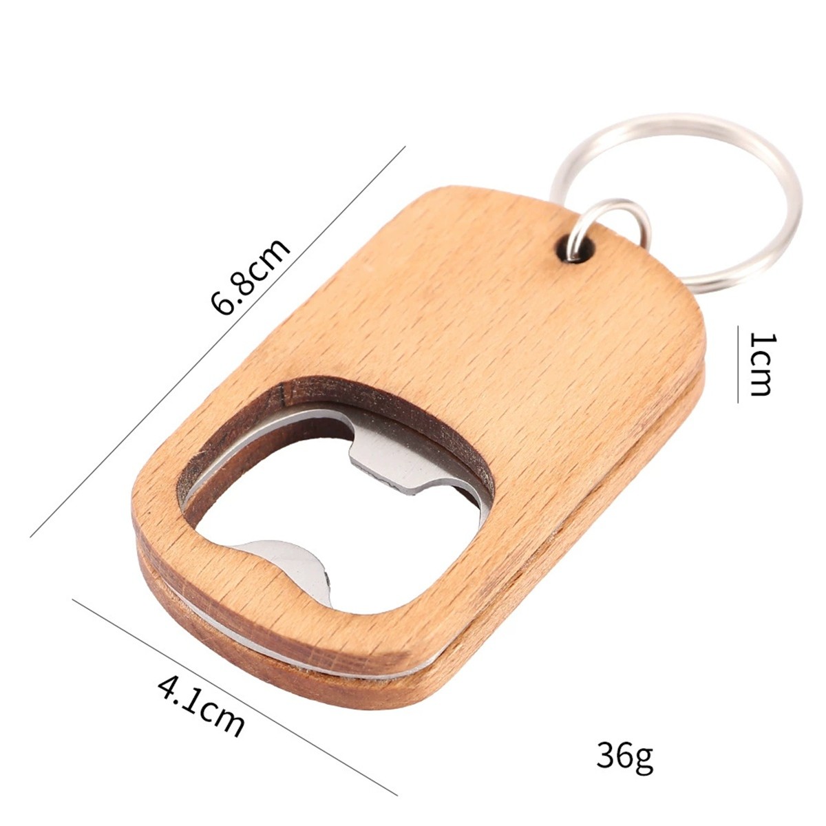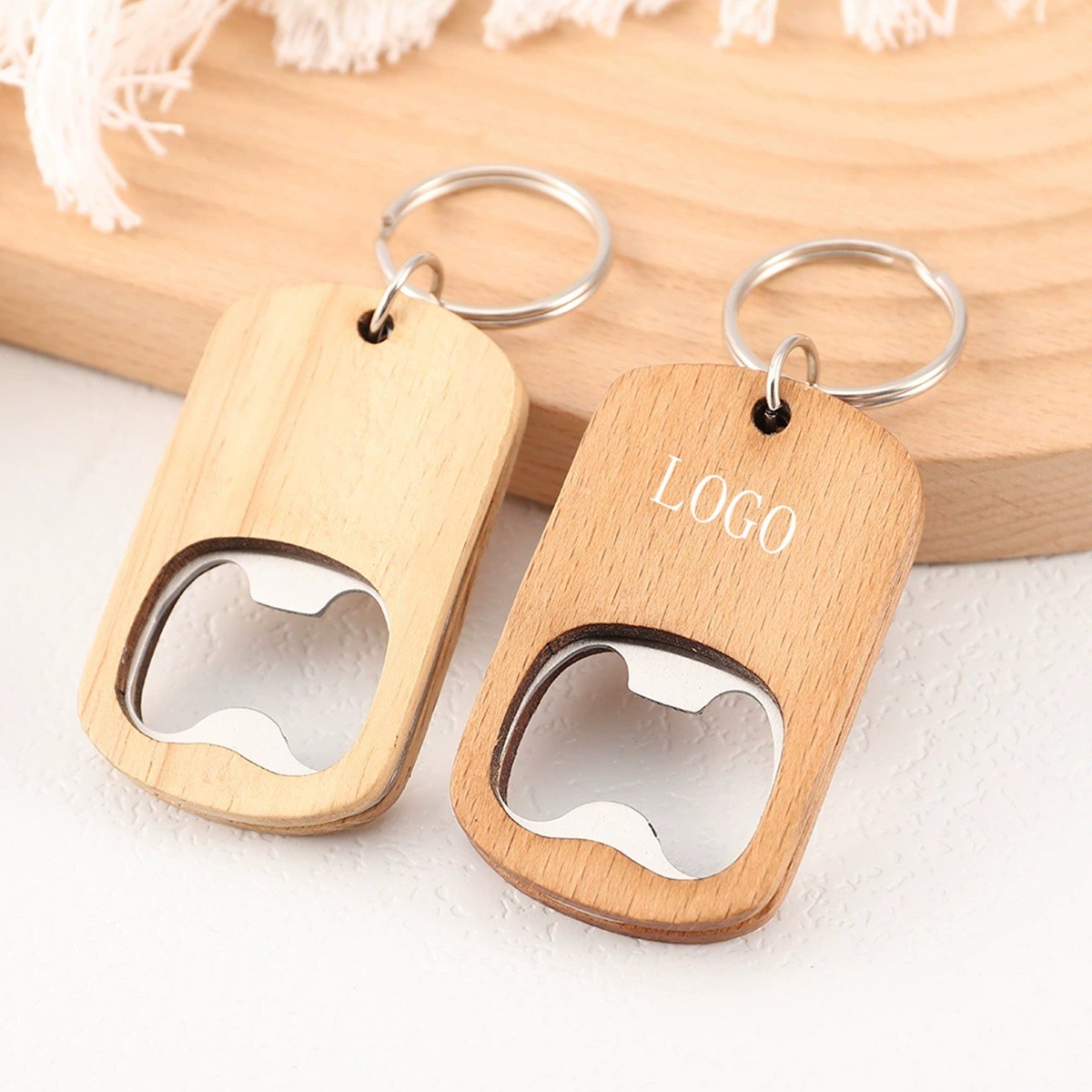 Description:This 2-in-1 wood bottle opener keychain, crafted from wood and stainless steel, serves as both a keychain and opener. Ideal for organizing keys, it effortlessly opens bottles, making it perfect for on-the-go use. This bar accessory swiftly removes beer and soda caps with a quick flick. Customize it with your logo or message for maximum exposure
