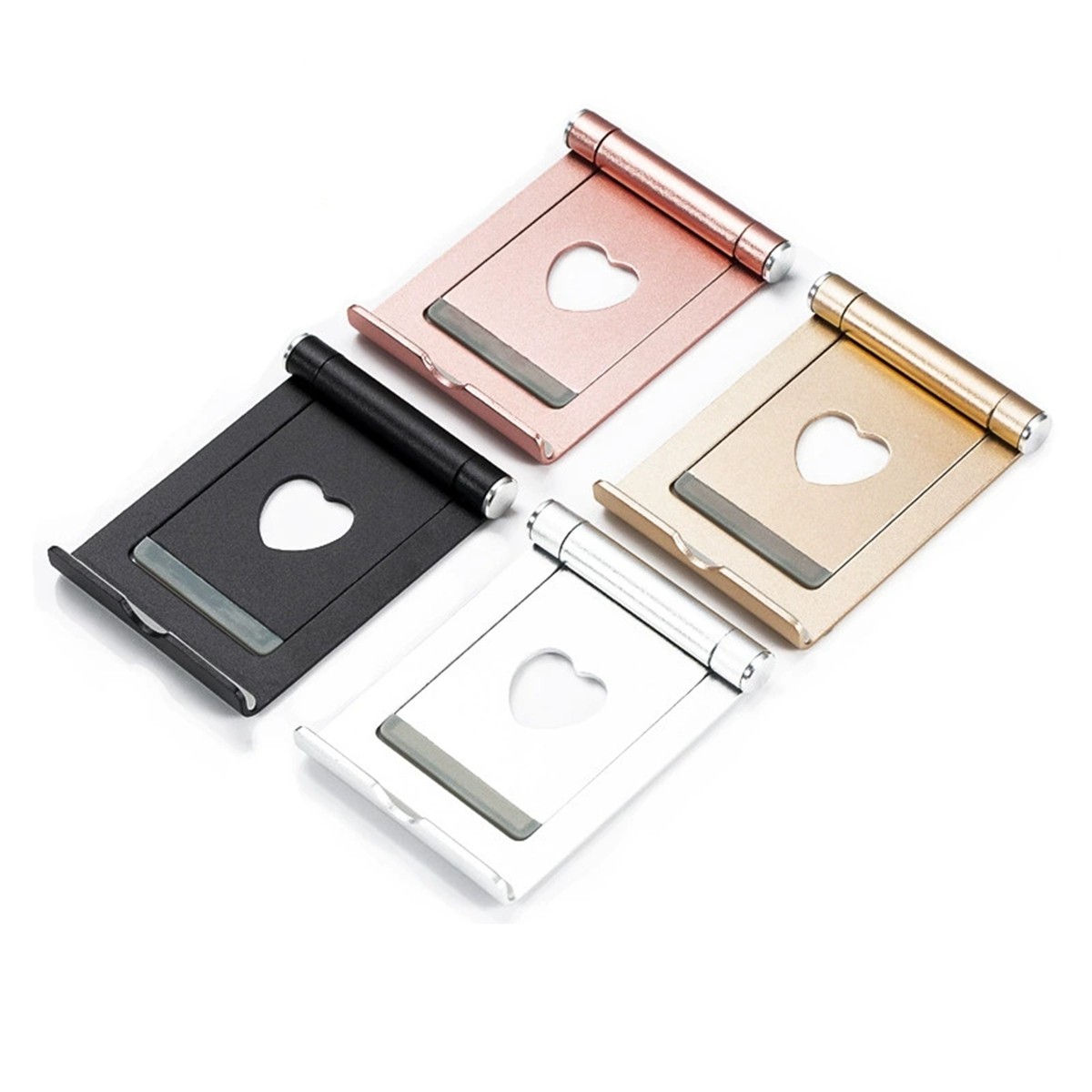 Description: This mobile stand is made of high quality aluminum material which is leightweight, rubber pads and feet make it more stable on the desk. Rubber feet and pads protect your devices from sliding and scratches. It folds up to a completely flat shape and easy to put into your pocket.